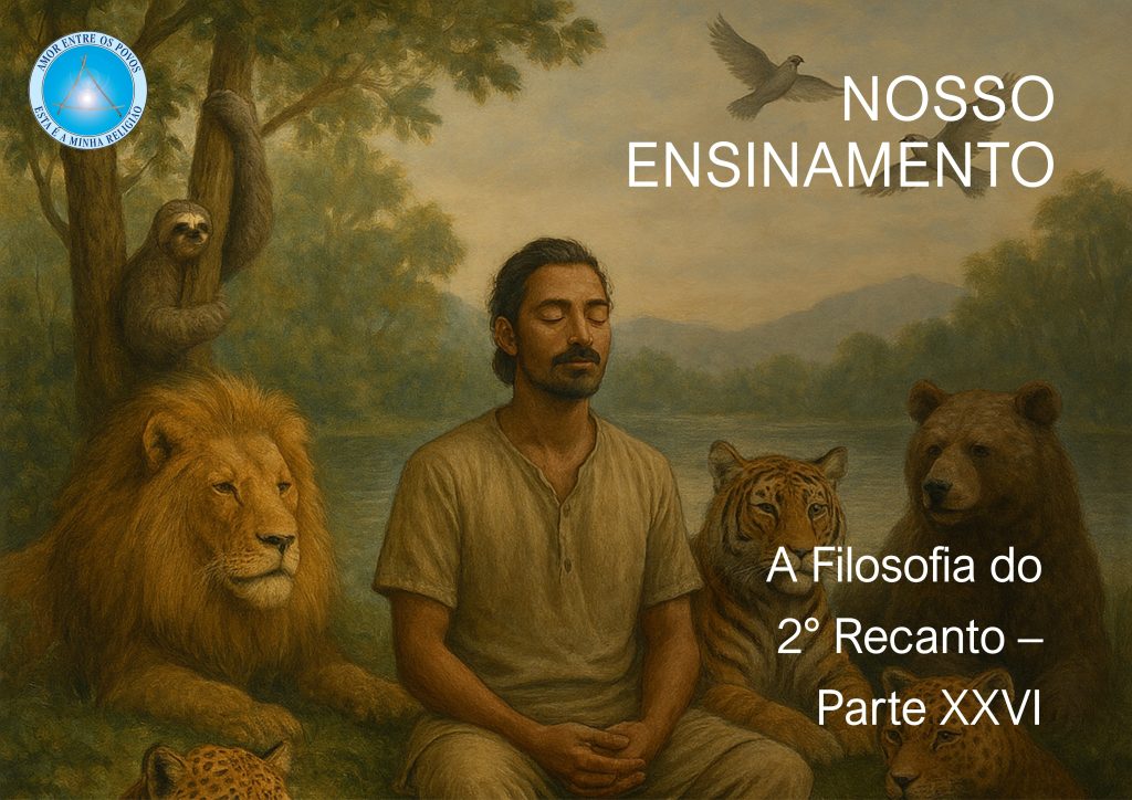 De longe, observe seu amigo fiel, o animal de estimação que te acompanha nessa jornada, aproximando-se suavemente. Ele te conduz ao Segundo Recanto, enquanto o companheiro espiritual permanece à beira da água. No Segundo Recanto, que é igual ao Primeiro, estão todos os animais e aves: o leão, a leoa com seus filhotes, o tigre, a onça com seus filhotes, o bicho-preguiça pendurado na árvore, várias aves voando e o urso. Passeie por esse recanto junto ao líder, reverenciando todos os animais e aves.